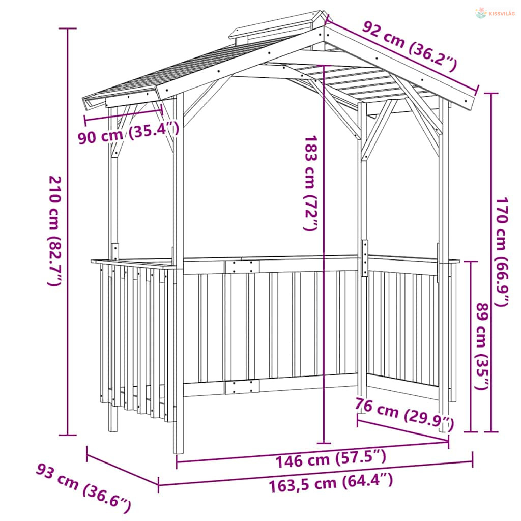 Impregnált fenyőfa grillezőfészer 163,5 x 93 x 210 cm