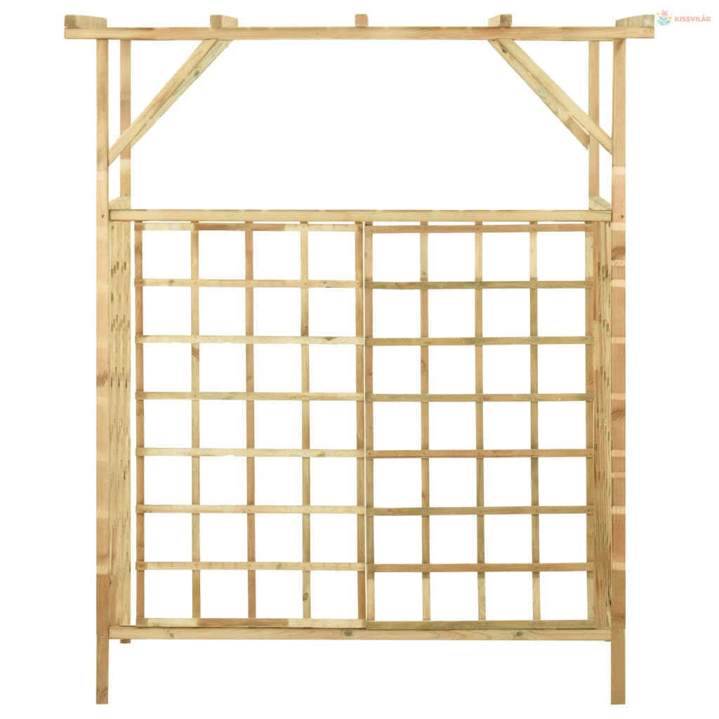 Ez a fa ültető zöld impregnált fenyőfából készült, ezért nagyon masszív, tartós és rothadásálló. A beépített rács nagyszerű támaszt biztosít a rózsáknak vagy más kúszónövényeknek. A kerti pergola alá 2 szemeteskukát helyezhet, és gyönyörű hátteret biztosít.