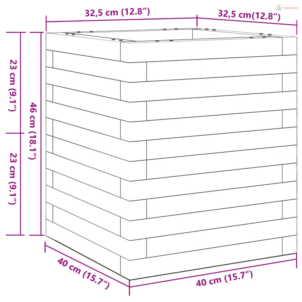Impregnált fenyőfa kerti virágláda 40x40x46 cm
