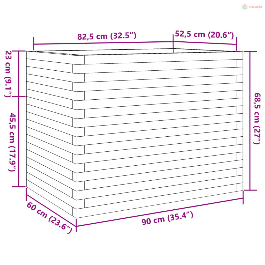 Impregnált fenyőfa kerti virágláda 90 x 60 x 68,5 cm
