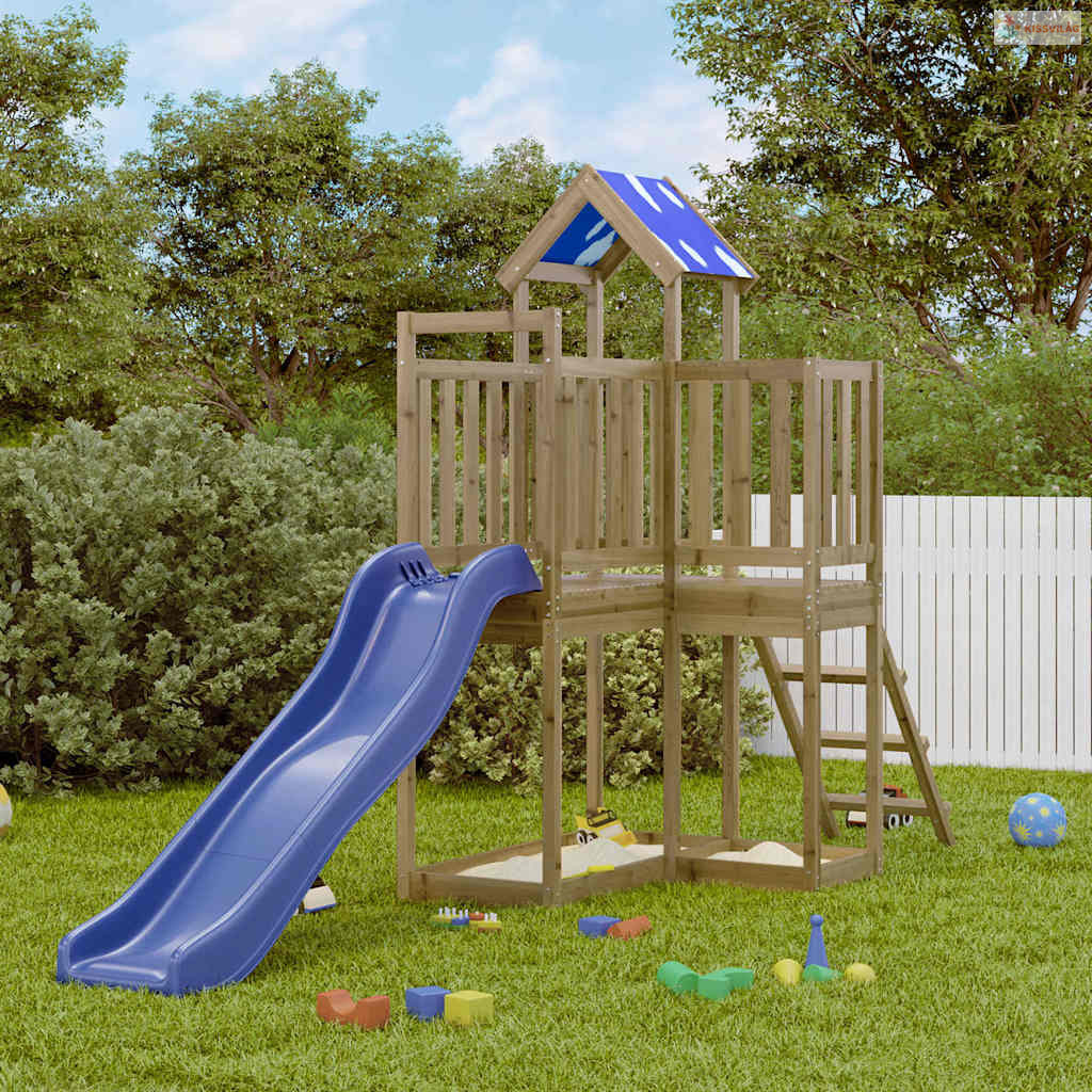 • Játszótorony anyaga: vákuumos nyomással impregnált fenyőfa
