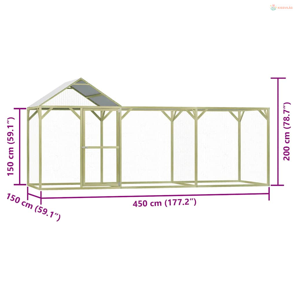 Impregnált fenyőfa tyúkól 4,5 x 1,5 x 2 m