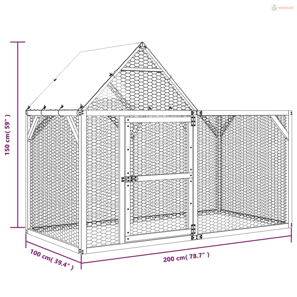 Impregnált tömör fenyőfa tyúkól 200x100x150 cm