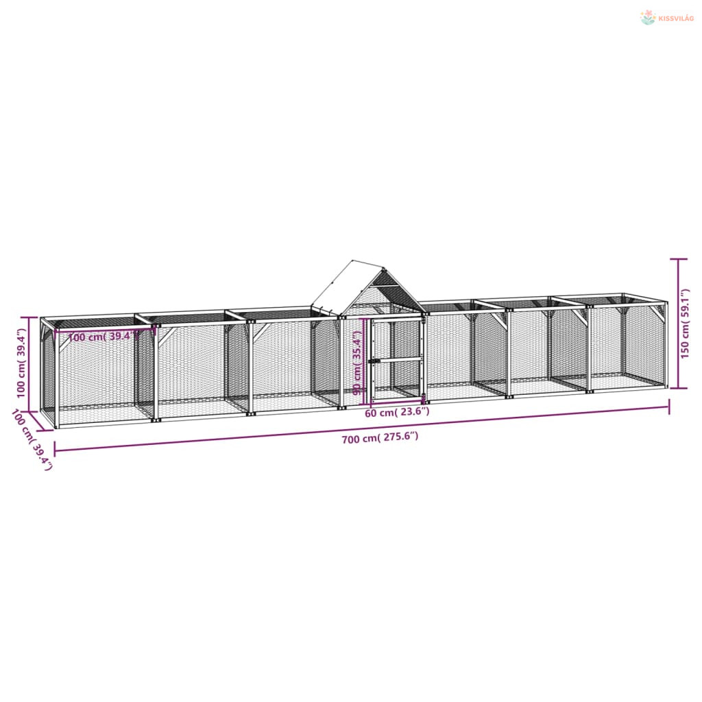 Impregnált tömör fenyőfa tyúkól 700 x 100 x 150 cm