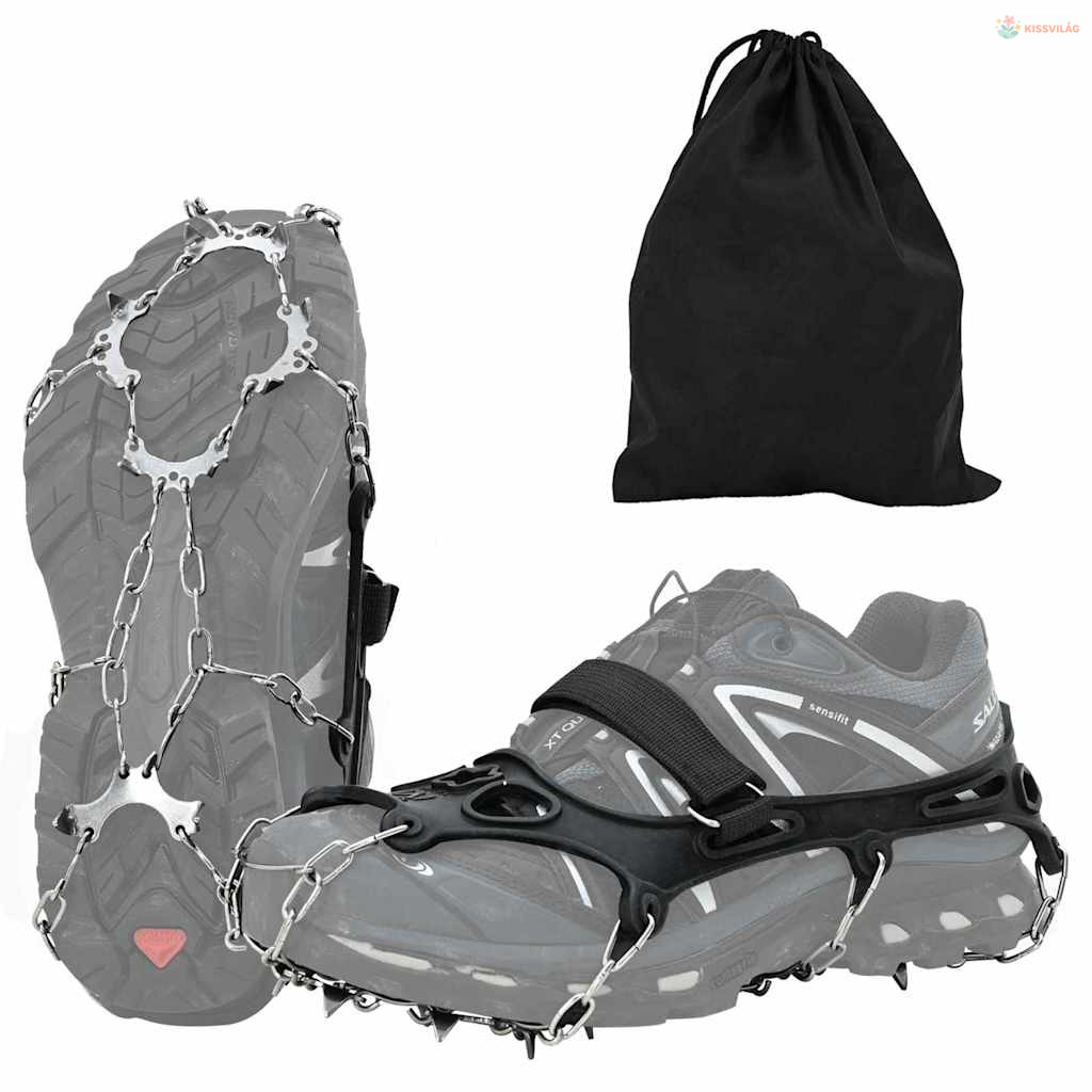 • Jellemzők / Funkció / Dizájn: Minden csúszkáló 10 rozsdamentes acél foggal van felszerelve, ami hatékonyan növeli a tapadást a különböző csúszós felületeken. Emellett a tépőzáras zárásokért ez se okoz gondot: könnyű őket felvenni és levenni, így biztosítva, hogy sokféle cipőhöz találj illesztést, legyen szó túrabakancsokról vagy trail futókról.