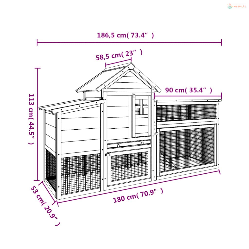 Kávészínű tömör fenyőfa tyúkól 186,5 x 58,5 x 113 cm