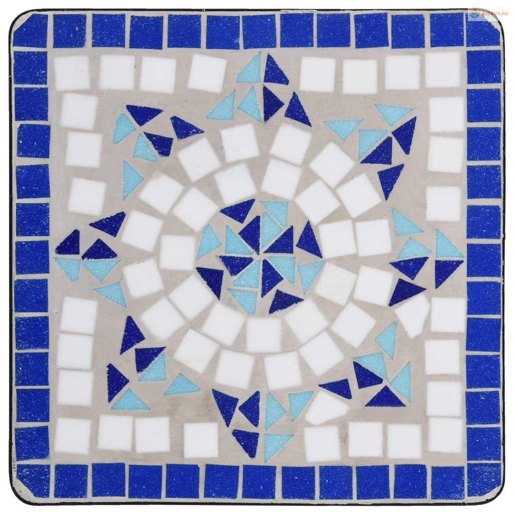 Kék és fehér kerámia mozaik kisasztal