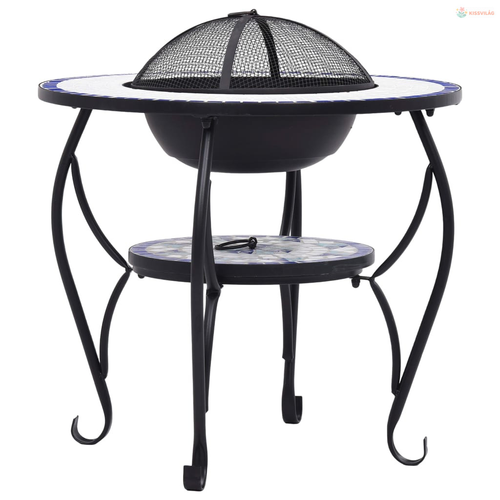 Kék és fehér kerámia mozaik tűztál asztallal 68 cm