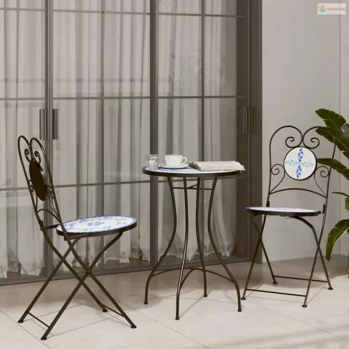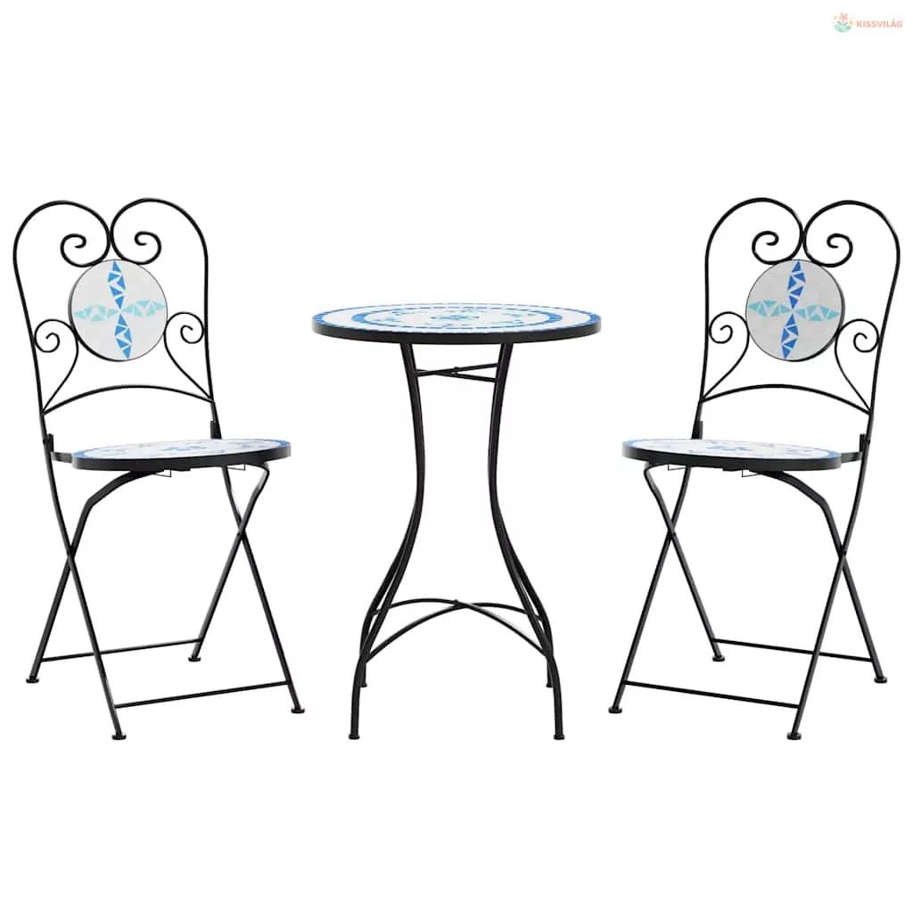 Kék és fehér vas és kerámia mozaikmintás bisztrószett