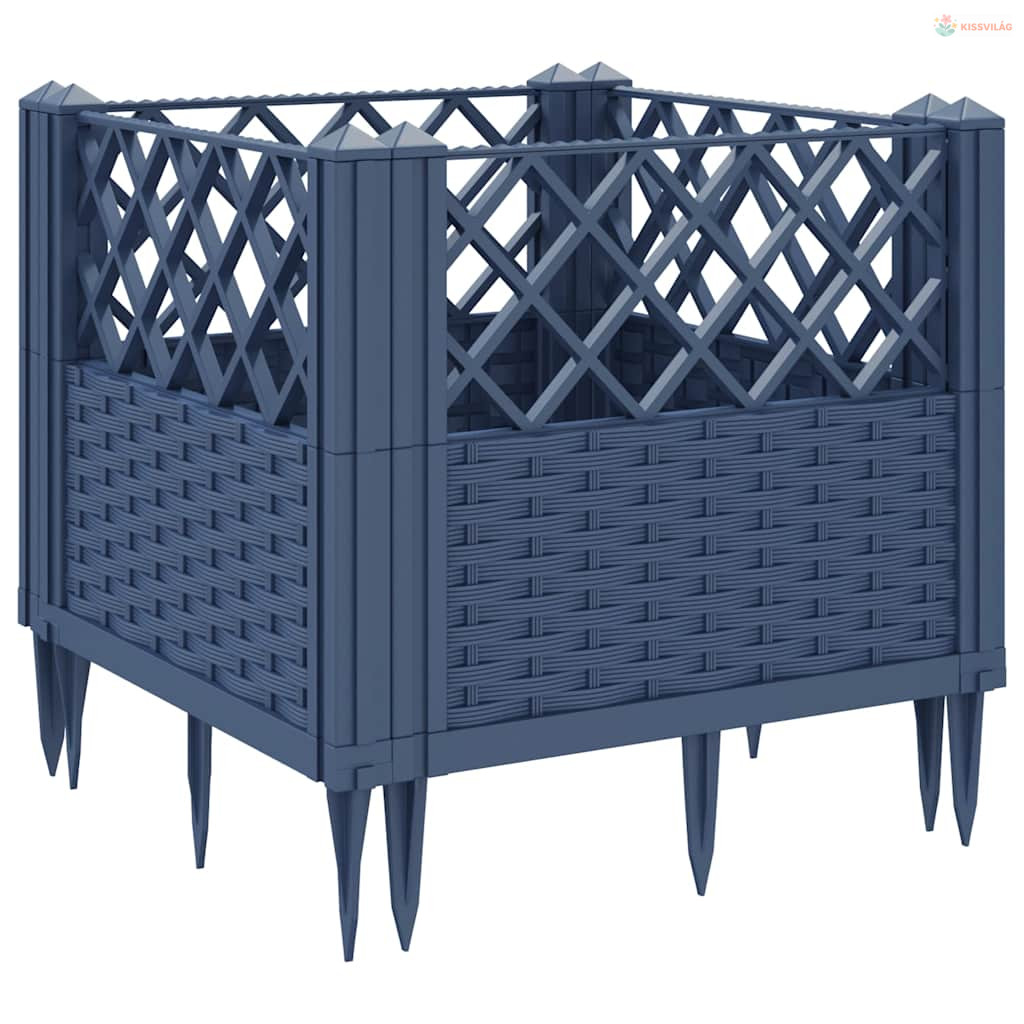 Kékszürke PP kerti virágláda cövekekkel 43,5 x 43,5 x 43,5 cm