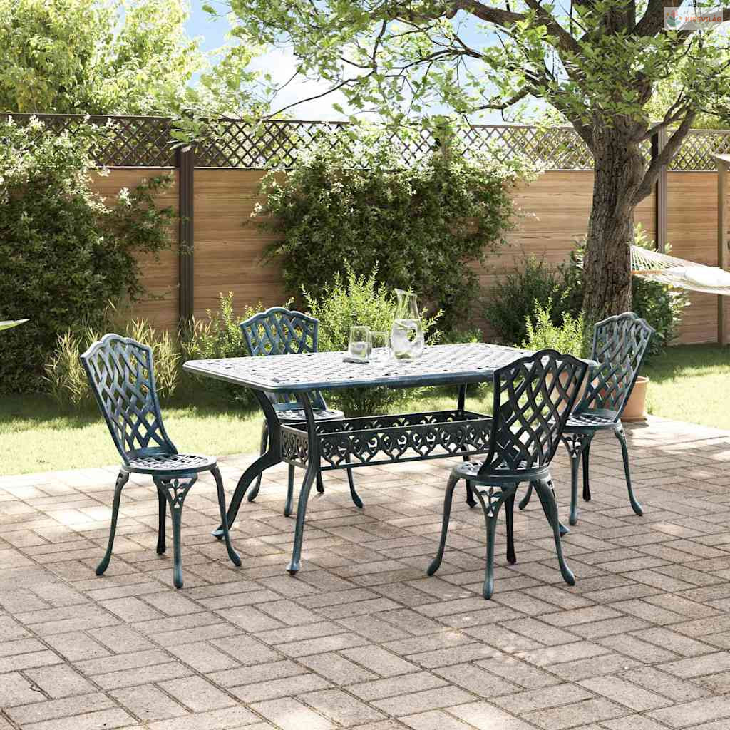 A Cast Aluminium Kerti Étkező Szett egy lenyűgöző kültéri bútor, ami ötvözi a hagyományos dizájnt a praktikus funkcionalitással. Ideális nyári és tavaszi összejövetelekhez, ez a szett úgy van megtervezve, hogy klasszikus vonzerőt adjon bármelyik kertnek vagy terasznak. A tágas, téglalap alakú asztal kényelmesen elfér akár hat főnek, így tökéletes mindennapi étkezésekhez, mind különleges alkalmakhoz.