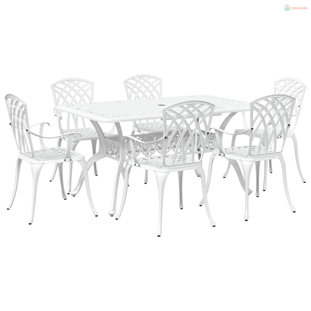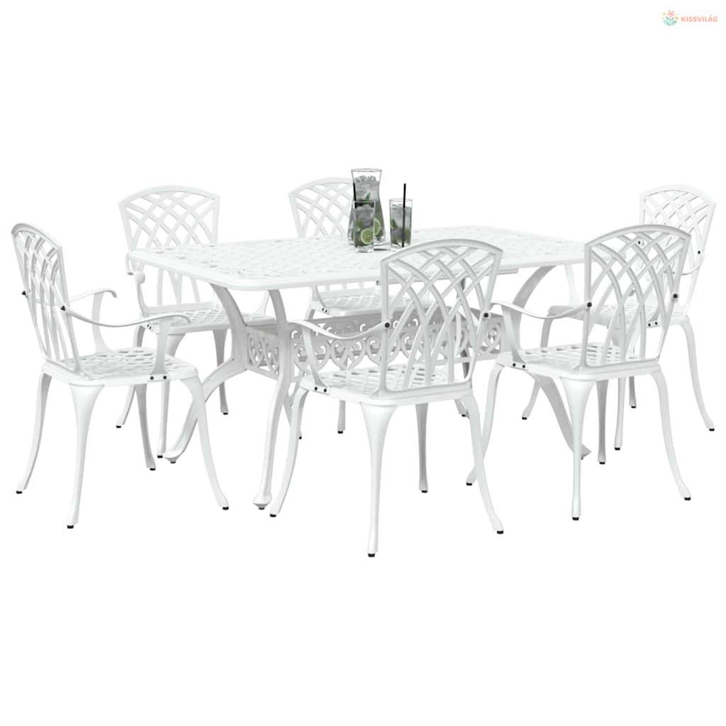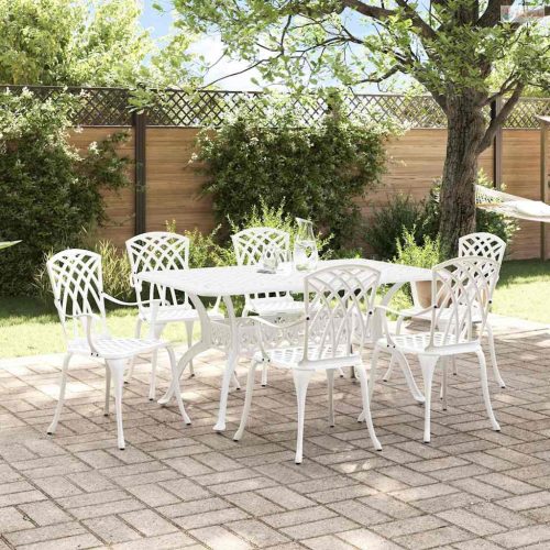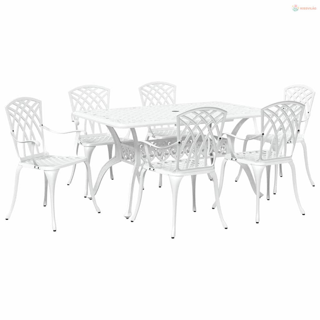 A Cast Aluminium Kerti Étkező Szett egy lenyűgöző kültéri bútor, ami ötvözi a hagyományos dizájnt a praktikus funkcionalitással. Ideális nyári és tavaszi összejövetelekhez, ez a szett úgy van megtervezve, hogy klasszikus vonzerőt adjon bármelyik kertnek vagy terasznak. A tágas, téglalap alakú asztal kényelmesen elfér akár hat főnek, így tökéletes mindennapi étkezésekhez, mind különleges alkalmakhoz.
