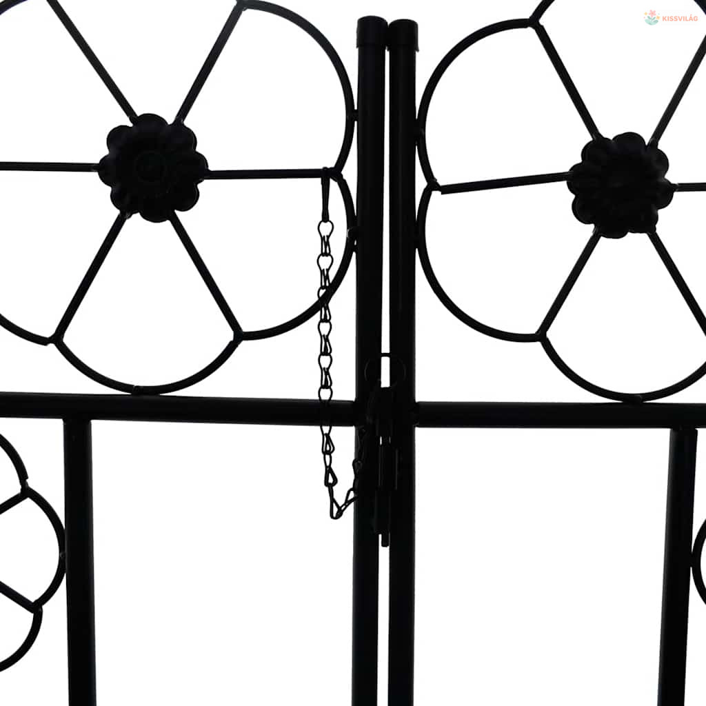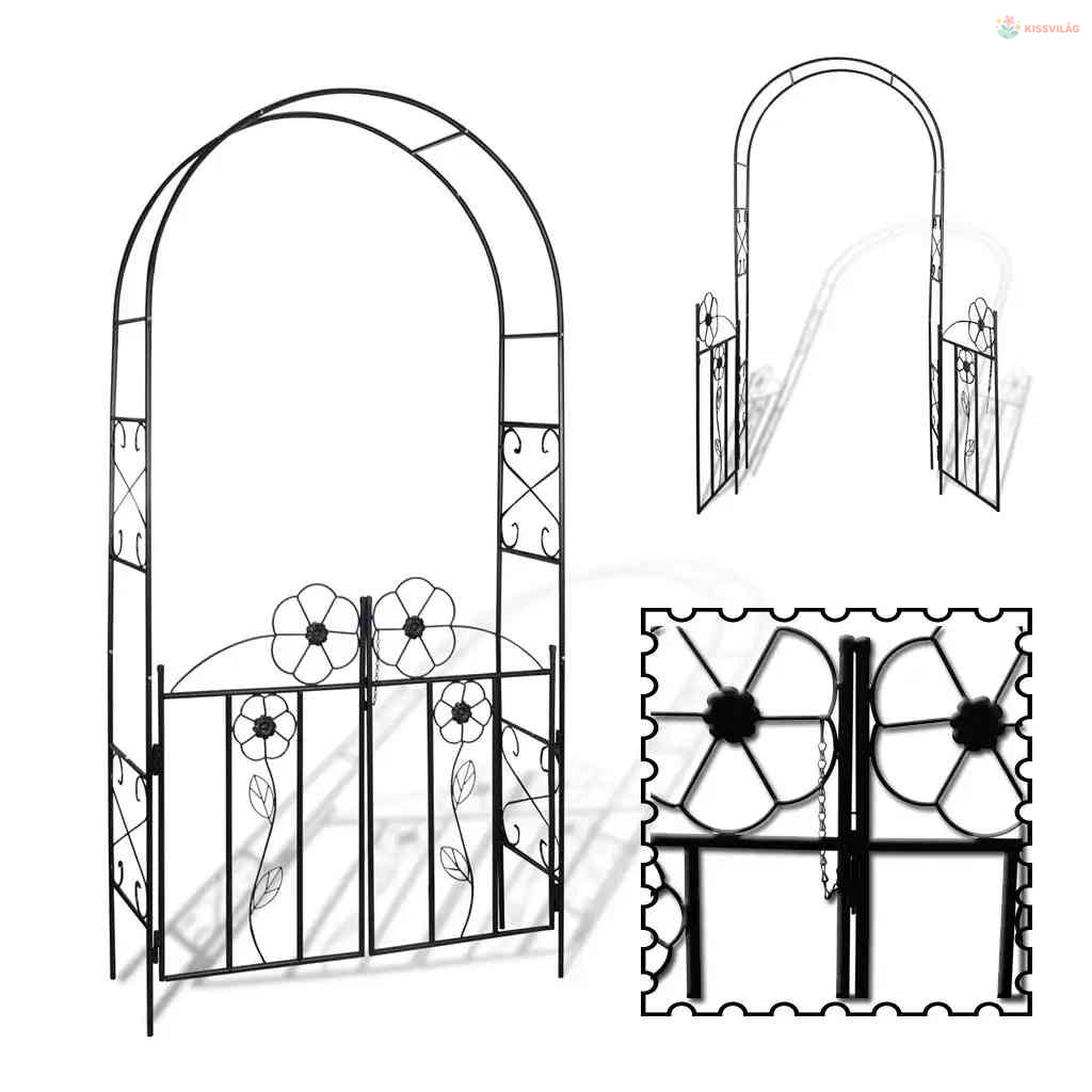 Ez a kiváló minőségű kerti boltív / kapu a maga elegáns virágmintájával kiváló választás rózsák és kúszónövények növekedése szempontjából. Minden bizonnyal igazi látványosságot képez minden kertben, udvaron vagy teraszon. A tartós vasból készült, időjárásálló ajtóval ellátott kerti boltív kellően erős ahhoz, hogy a legerősebb kúszónövényeket is elbírja. Könnyen üzembe helyezhető, felszerelhető.