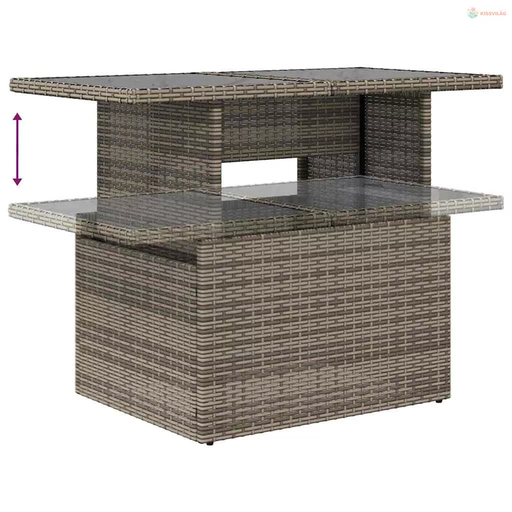 • Beépített alkotóelemek: A szett két sarokülést, hat középső ülést és két karos kanapét tartalmaz, plusz egy asztalt, ami remekül alkalmas a vendégek fogadására. A poli rattan karfák és háttámlák modern megjelenést adnak a szettnek, ötvözve a funkcionalitást a stílussal.