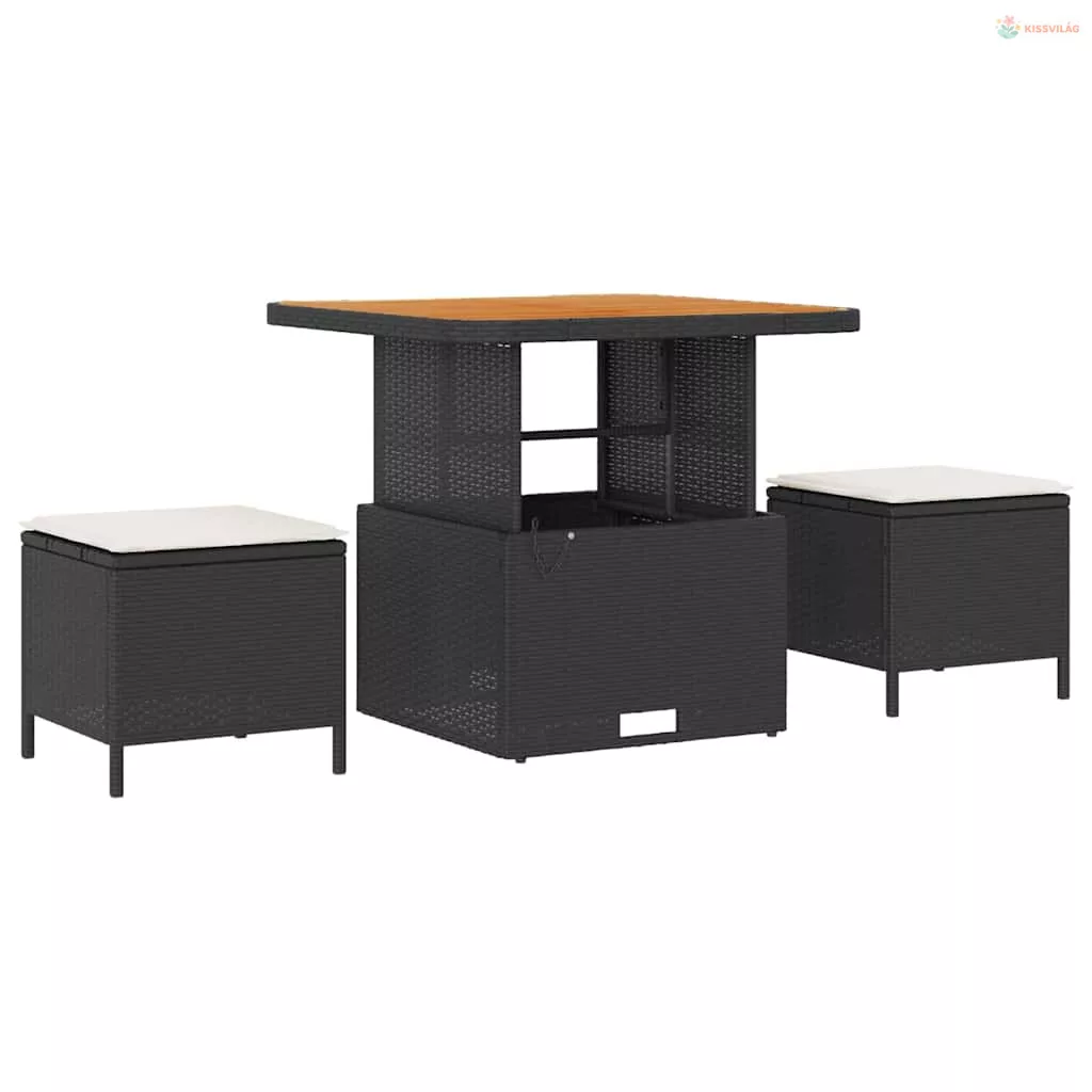 Tömör Akácfa Felület: Ismert az erejéről és a rügyének szépségéről, a tömör akácfa ideális választás kültéri bútorokhoz. Ez az anyag tartós minőséget biztosít, miközben fokozza a kültéri tered természetes esztétikáját. Sűrű összetétele ellenáll különböző időjárási körülményeknek, megbízható felületet kínálva, amely kiegészíti a masszív rattan kereket.,Tartós Poli Rattan Tervezés: Az ebben a kerti kanapészettben használt poli rattan modern érintést kínál, amely zökkenőmentesen illeszkedik az acélvázhoz a stabilitás növelése érdekében. Könnyű és időjárásálló tulajdonságai miatt okos választás, ha tartós, mégis stílusos megoldásra van szükséged.,Magasságban Állítható Kényelem: Ne legyen egy méret mindenkinek, az ebben a szettben található állítható elemekkel. Ez a funkció lehetővé teszi a felhasználók számára, hogy módosítsák az ülés magasságát, alkalmazkodva a különböző igényekhez és megkönnyítve a kényelmet. Okosan ötvözi a stílust és a funkcionalitást, felhasználóbaráttá téve.,Track Kartámaszok Támogatása: Poli rattan track kartámaszokkal felszerelve ez a kanapé szett kényelmet biztosít anélkül, hogy feláldozná az áramvonalas dizájnt. A kartámaszok keskenyek és egyenesek, ergonomikus támogatást nyújtanak, amely alkalmazkodik a különféle pihenési helyzetekhez a laza csevegésektől a kényelmes relaxációig.,Szezonális Karbantartási Ajánlások: A kertkanapé szett tiszta állapotának megőrzéséért használj huzatot, ha nem használod. Ez a karbantartási stratégia segít meghosszabbítani a bútor élettartamát és megjelenését, így egy gondos kiegészítője a nyári kültéri tereknek.