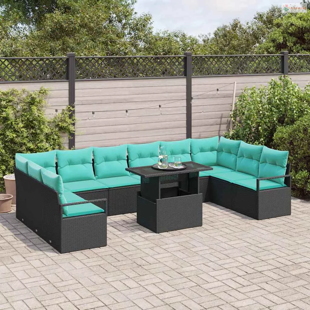 Kerti Kanapé Szett párnával 11 pcs Fekete és kék polirattan