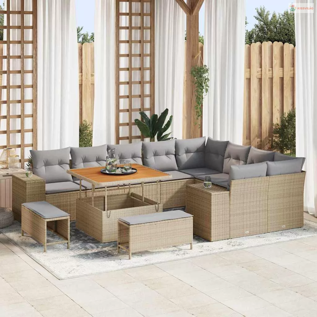 Kerti Kanapé Szett párnával 12 pcs Bézs polirattan