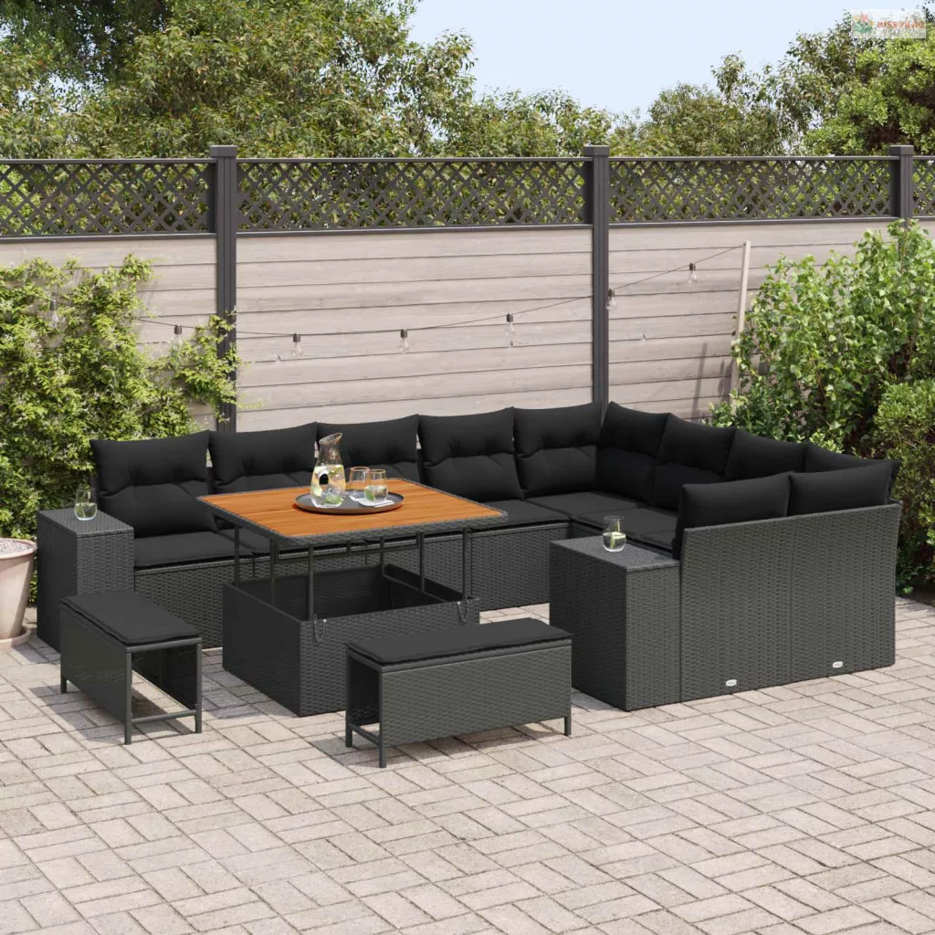 Kerti Kanapé Szett párnával 12 pcs Fekete polirattan