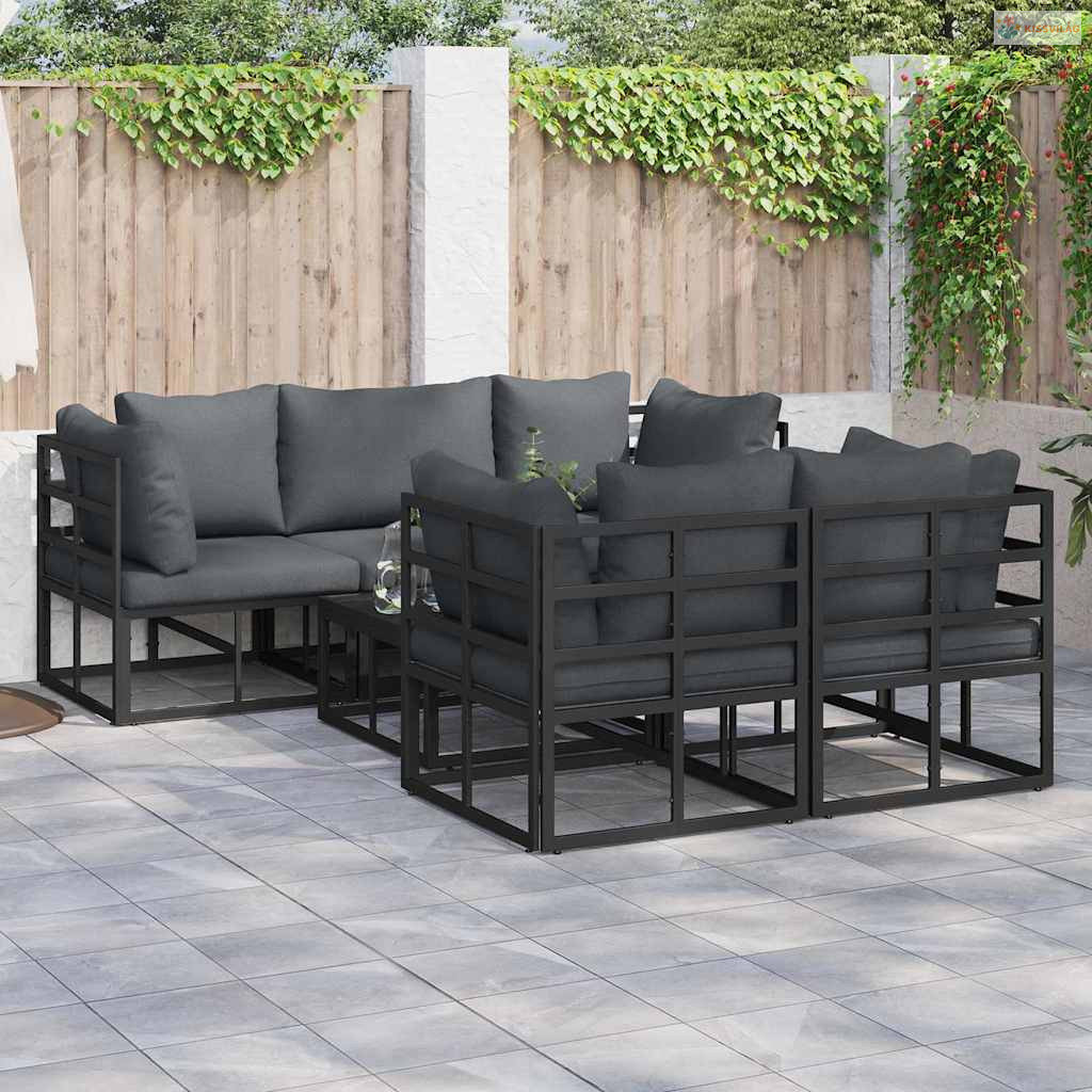 Kerti Kanapé Szett párnával 6 pcs Fekete Acél
