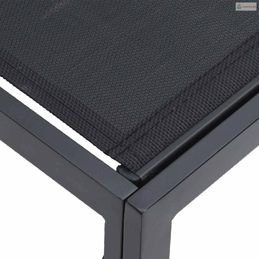 • Anyagok: Alumínium kerete tartós stabilitást és erősséget ad. Robusztus kivitelezése biztosítja, hogy a szett ellenálljon az időjárás viszontagságainak, így sokáig élvezheted a kültéri bútort. Poliészter párnák kényelem és tartósság terén is jó választás.