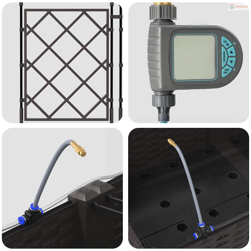 • Öntöző rendszer: Beépített öntöző megoldása fenntartja a növények optimális növekedését az állandó nedvességgel. Ideális olyanoknak, akiknek sűrű a programjuk, mégis szeretnék egészséges növényeket, anélkül, hogy naponta öntözniük kellene.