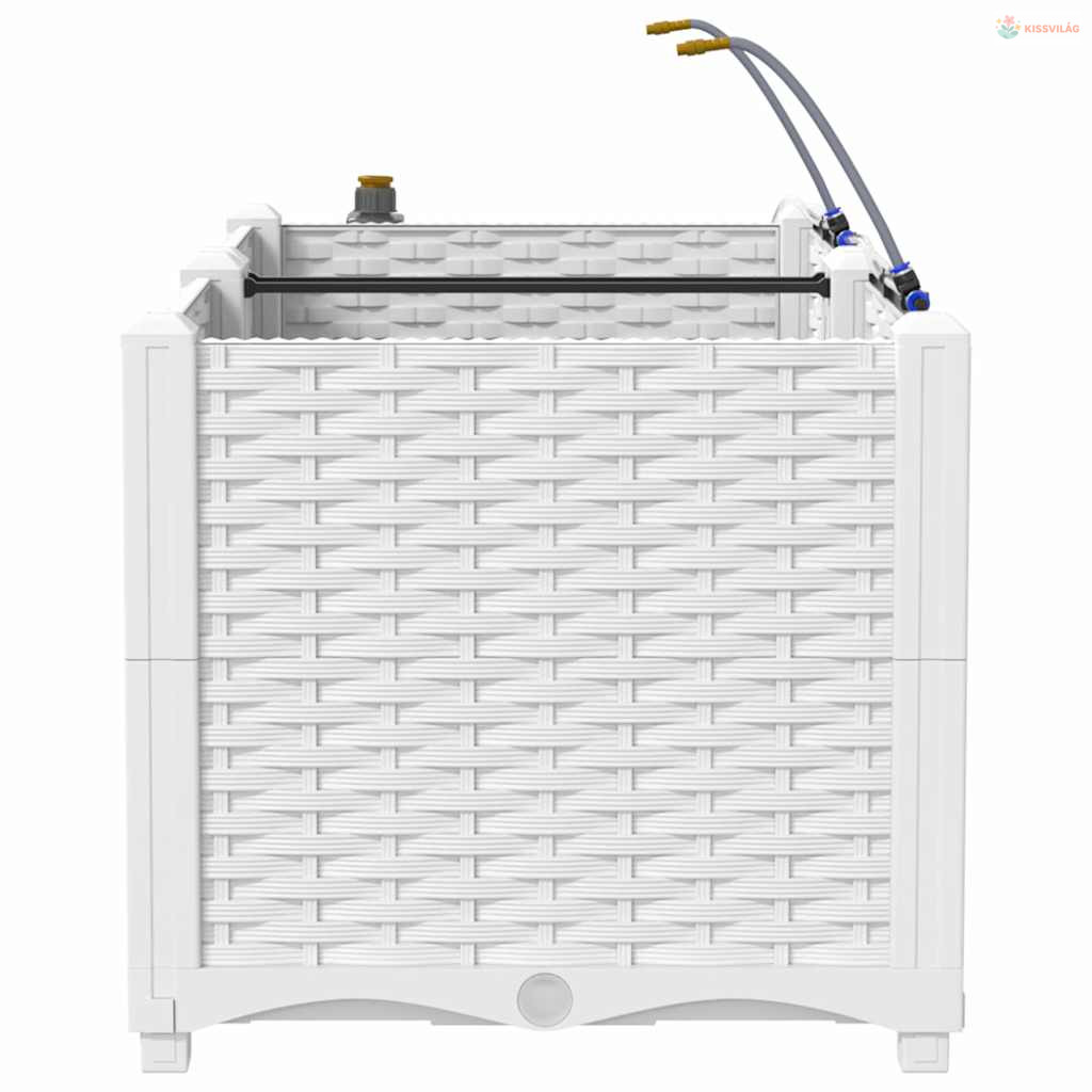 Ez a sokoldalú öntöző virágcserép modern megoldás a kültéri növénykedvelőknek. Aki szereti a praktikus és egyszerű megoldásokat, annak készült, hiszen letisztult formája bármilyen kert vagy terasz kinézetét feldobja. Minimalista dizájnja remekül kiegészíti a kortárs és hagyományos kerteket, elegáns teret ad a kedvenc növényeidnek. Képzeld el ezt a kecses cserepet a kertedben, ahol mindenféle növény és virág elfér, élettel és színnel telítve.