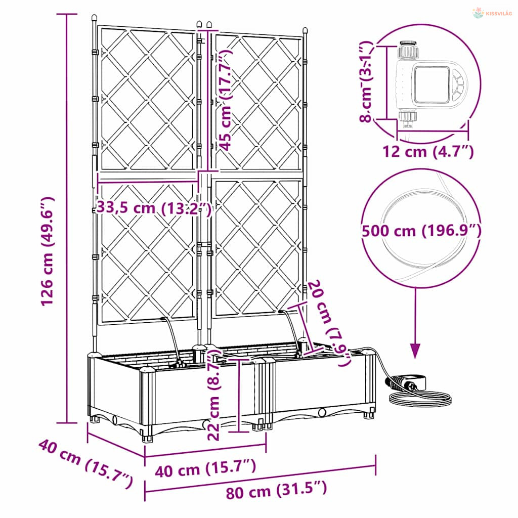 • Öntöző rendszer: Beépített öntöző megoldása fenntartja a növények optimális növekedését az állandó nedvességgel. Ideális olyanoknak, akiknek sűrű a programjuk, mégis szeretnék egészséges növényeket, anélkül, hogy naponta öntözniük kellene.