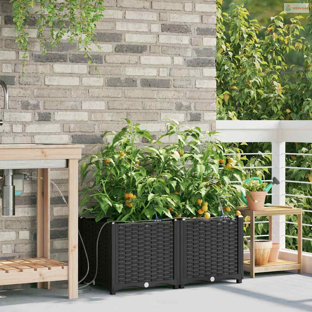 Kerti cserép 2 pcs Fekete Műanyag