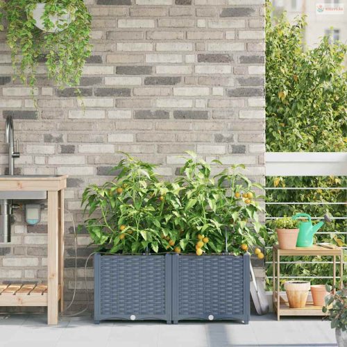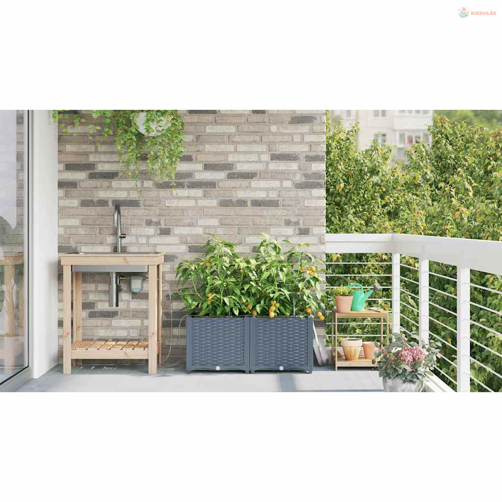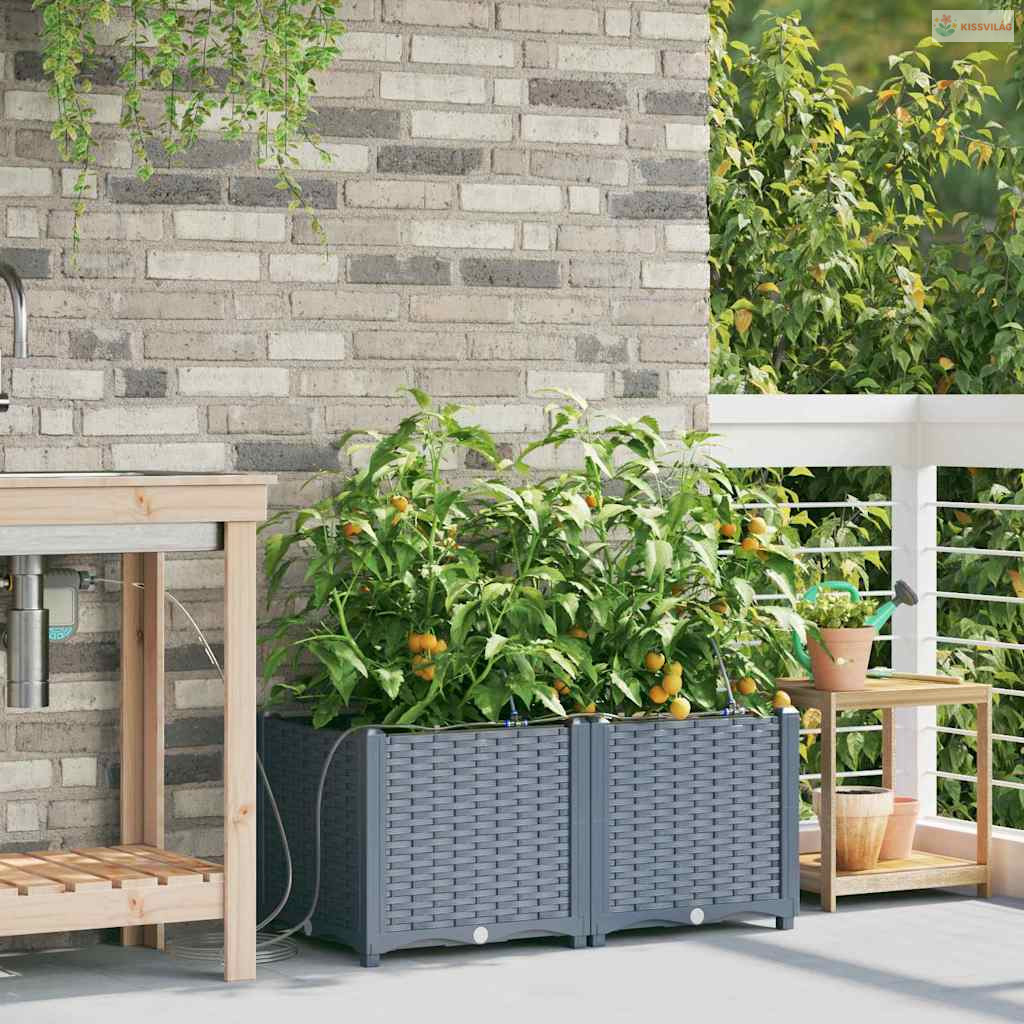 Ez a sokoldalú öntöző virágcserép modern megoldás a kültéri növénykedvelőknek. Aki szereti a praktikus és egyszerű megoldásokat, annak készült, hiszen letisztult formája bármilyen kert vagy terasz kinézetét feldobja. Minimalista dizájnja remekül kiegészíti a kortárs és hagyományos kerteket, elegáns teret ad a kedvenc növényeidnek. Képzeld el ezt a kecses cserepet a kertedben, ahol mindenféle növény és virág elfér, élettel és színnel telítve.