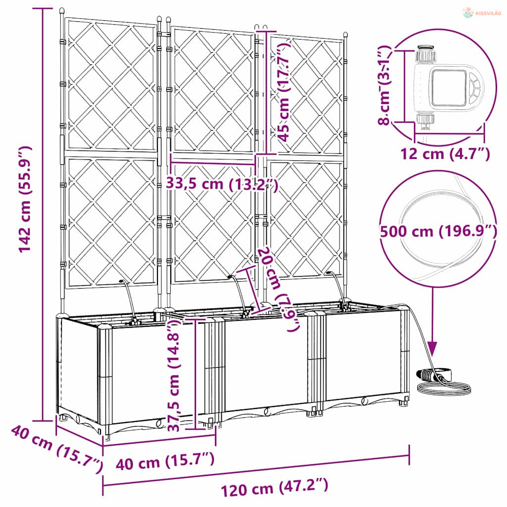 • Öntöző rendszer: Beépített öntöző megoldása fenntartja a növények optimális növekedését az állandó nedvességgel. Ideális olyanoknak, akiknek sűrű a programjuk, mégis szeretnék egészséges növényeket, anélkül, hogy naponta öntözniük kellene.