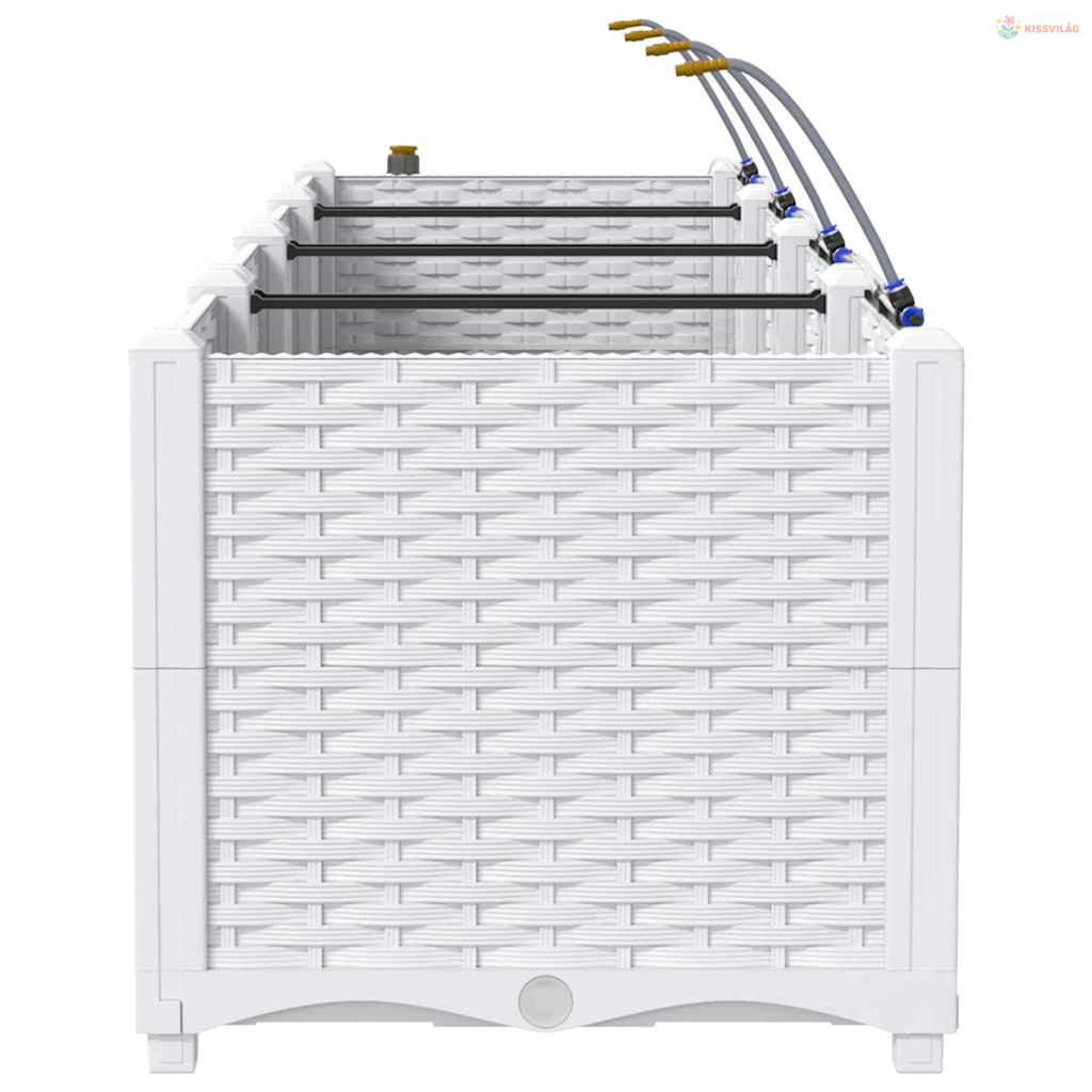 Ez a sokoldalú öntöző virágcserép modern megoldás a kültéri növénykedvelőknek. Aki szereti a praktikus és egyszerű megoldásokat, annak készült, hiszen letisztult formája bármilyen kert vagy terasz kinézetét feldobja. Minimalista dizájnja remekül kiegészíti a kortárs és hagyományos kerteket, elegáns teret ad a kedvenc növényeidnek. Képzeld el ezt a kecses cserepet a kertedben, ahol mindenféle növény és virág elfér, élettel és színnel telítve.