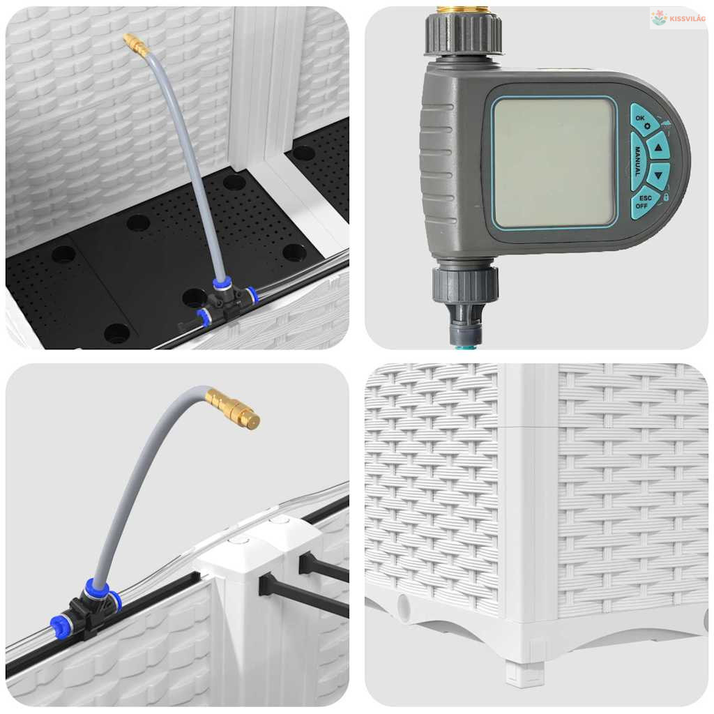 • Öntöző rendszer: Beépített öntöző megoldása fenntartja a növények optimális növekedését az állandó nedvességgel. Ideális olyanoknak, akiknek sűrű a programjuk, mégis szeretnék egészséges növényeket, anélkül, hogy naponta öntözniük kellene.