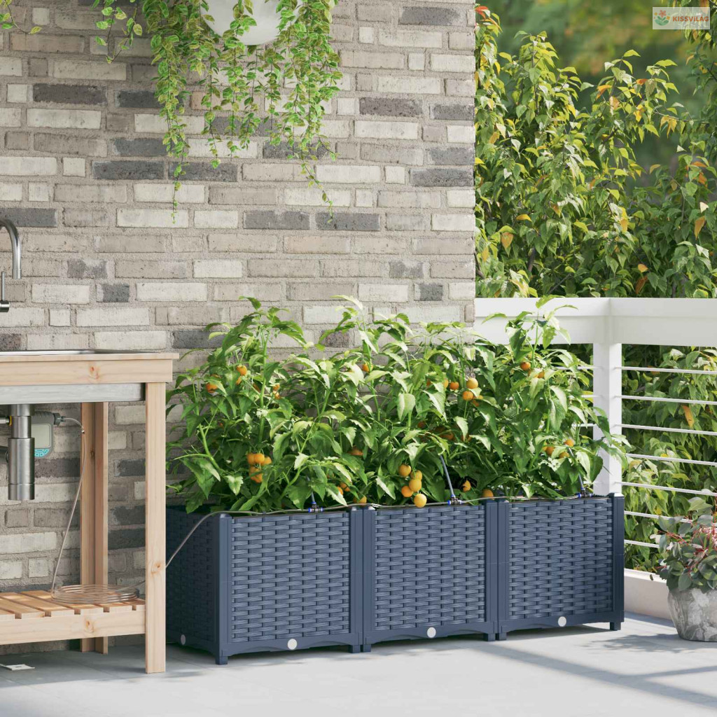 Ez a sokoldalú öntöző virágcserép modern megoldás a kültéri növénykedvelőknek. Aki szereti a praktikus és egyszerű megoldásokat, annak készült, hiszen letisztult formája bármilyen kert vagy terasz kinézetét feldobja. Minimalista dizájnja remekül kiegészíti a kortárs és hagyományos kerteket, elegáns teret ad a kedvenc növényeidnek. Képzeld el ezt a kecses cserepet a kertedben, ahol mindenféle növény és virág elfér, élettel és színnel telítve.