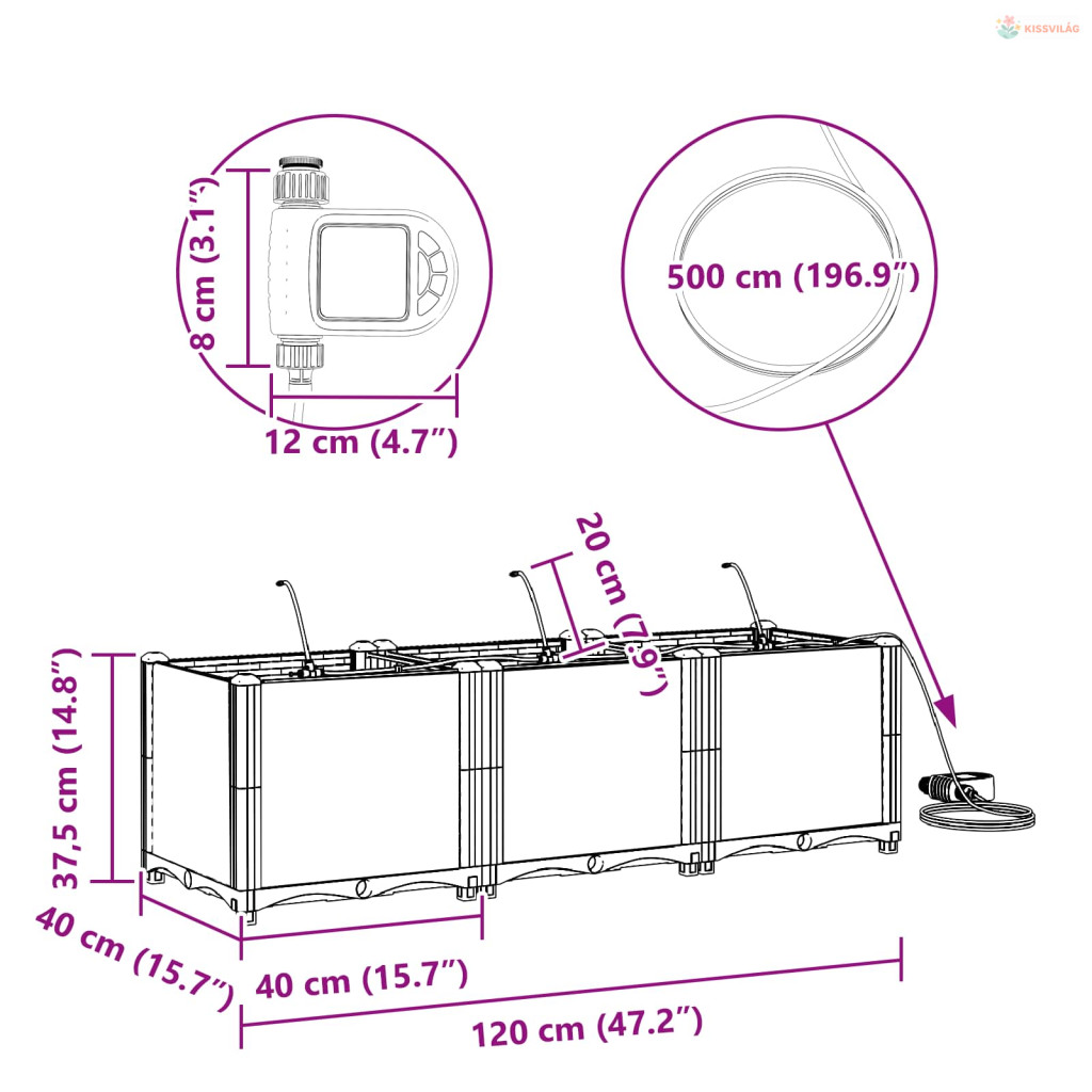 • Öntöző rendszer: Beépített öntöző megoldása fenntartja a növények optimális növekedését az állandó nedvességgel. Ideális olyanoknak, akiknek sűrű a programjuk, mégis szeretnék egészséges növényeket, anélkül, hogy naponta öntözniük kellene.