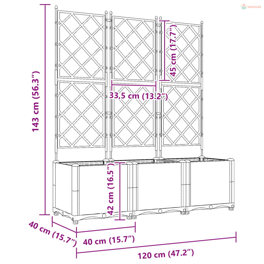 • 3 db virágtartó trellisszel