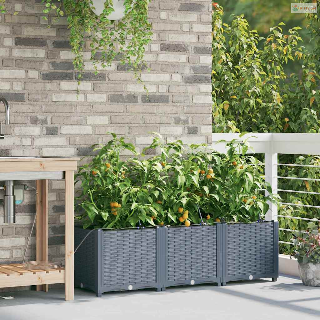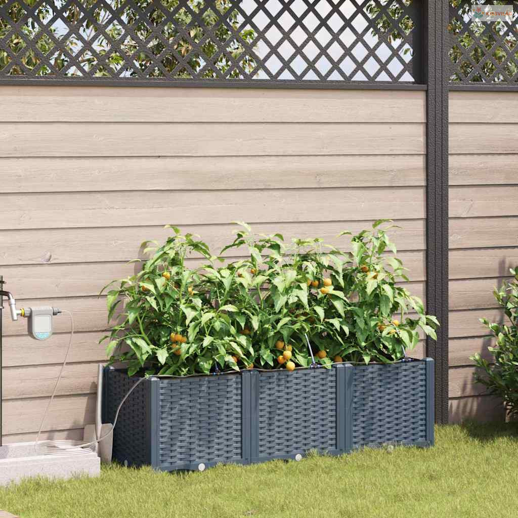 Ez a sokoldalú öntöző virágcserép modern megoldás a kültéri növénykedvelőknek. Aki szereti a praktikus és egyszerű megoldásokat, annak készült, hiszen letisztult formája bármilyen kert vagy terasz kinézetét feldobja. Minimalista dizájnja remekül kiegészíti a kortárs és hagyományos kerteket, elegáns teret ad a kedvenc növényeidnek. Képzeld el ezt a kecses cserepet a kertedben, ahol mindenféle növény és virág elfér, élettel és színnel telítve.
