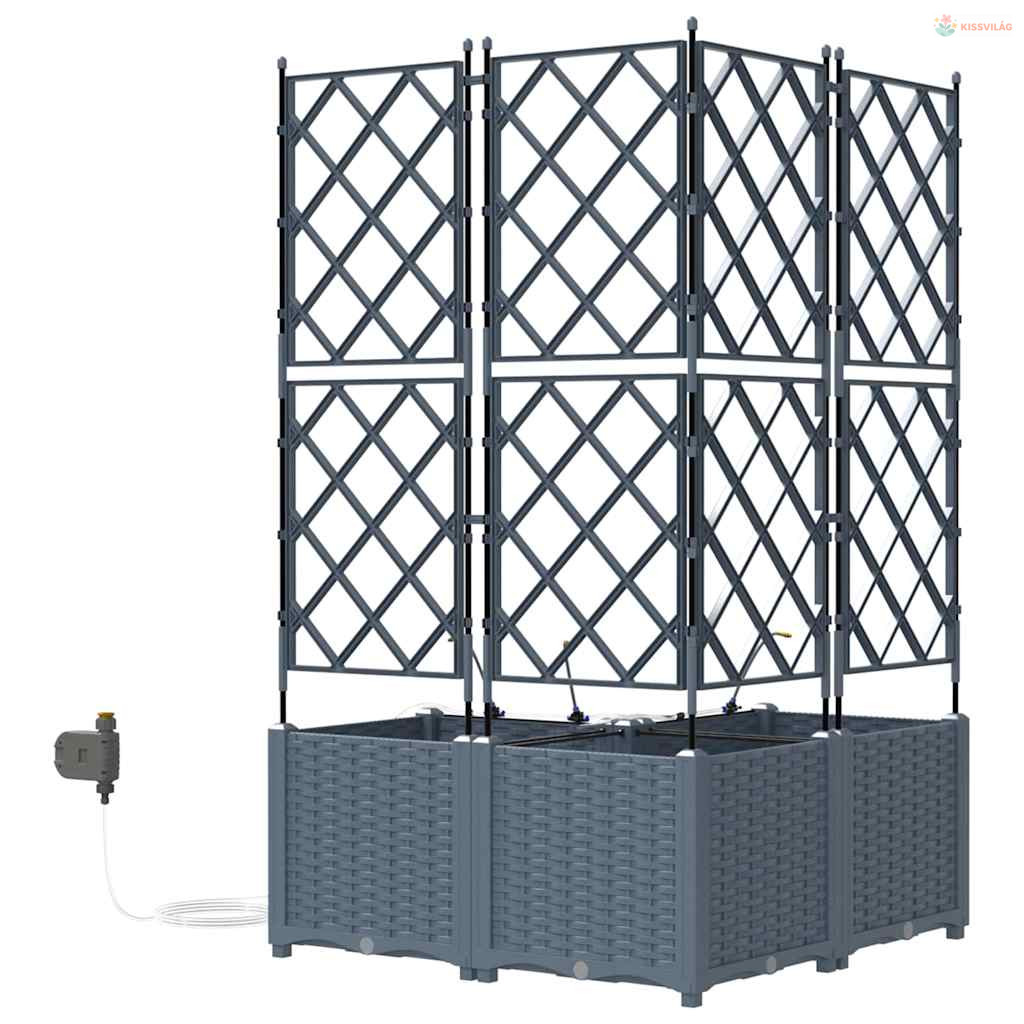 Ez a sokoldalú öntöző virágcserép modern megoldás a kültéri növénykedvelőknek. Aki szereti a praktikus és egyszerű megoldásokat, annak készült, hiszen letisztult formája bármilyen kert vagy terasz kinézetét feldobja. Minimalista dizájnja remekül kiegészíti a kortárs és hagyományos kerteket, elegáns teret ad a kedvenc növényeidnek. Képzeld el ezt a kecses cserepet a kertedben, ahol mindenféle növény és virág elfér, élettel és színnel telítve.