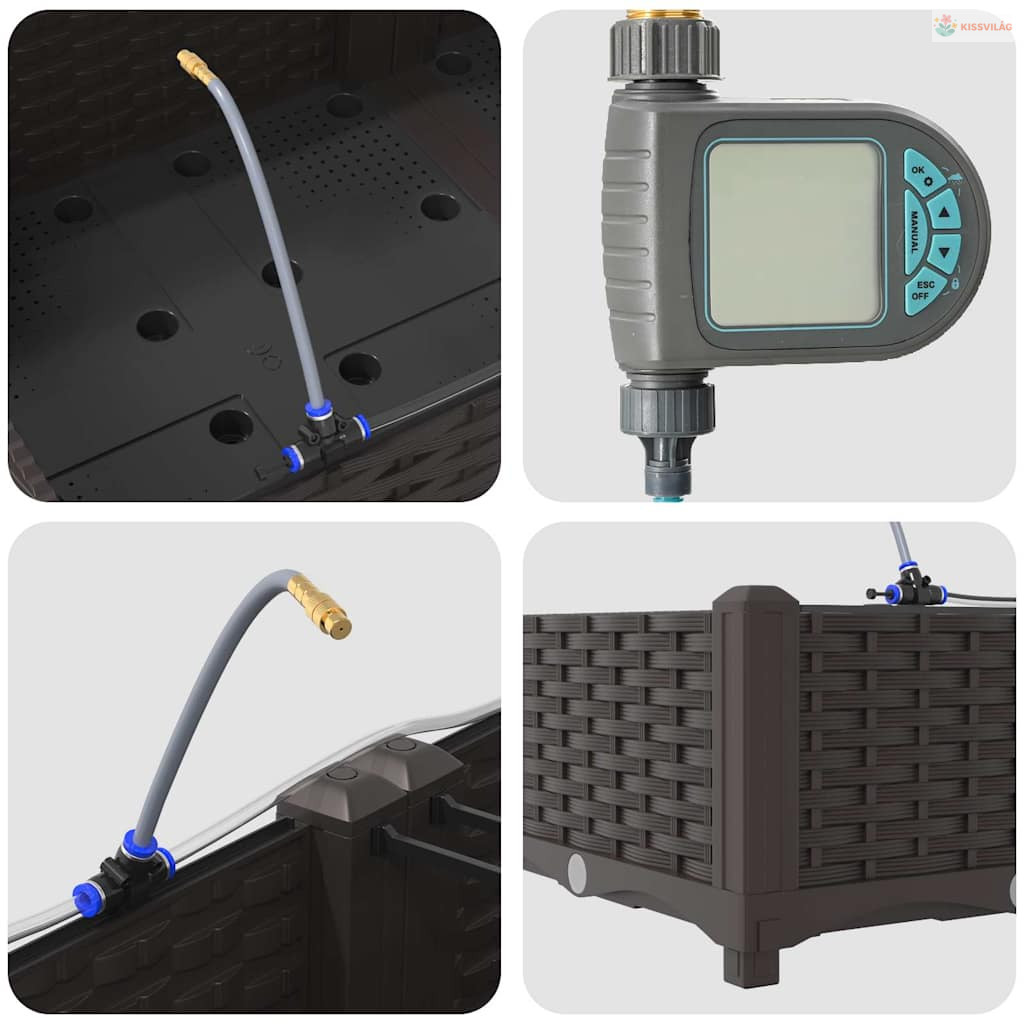 • Öntöző rendszer: Beépített öntöző megoldása fenntartja a növények optimális növekedését az állandó nedvességgel. Ideális olyanoknak, akiknek sűrű a programjuk, mégis szeretnék egészséges növényeket, anélkül, hogy naponta öntözniük kellene.