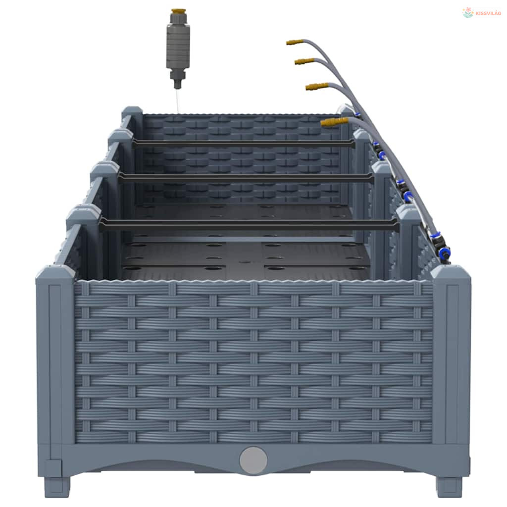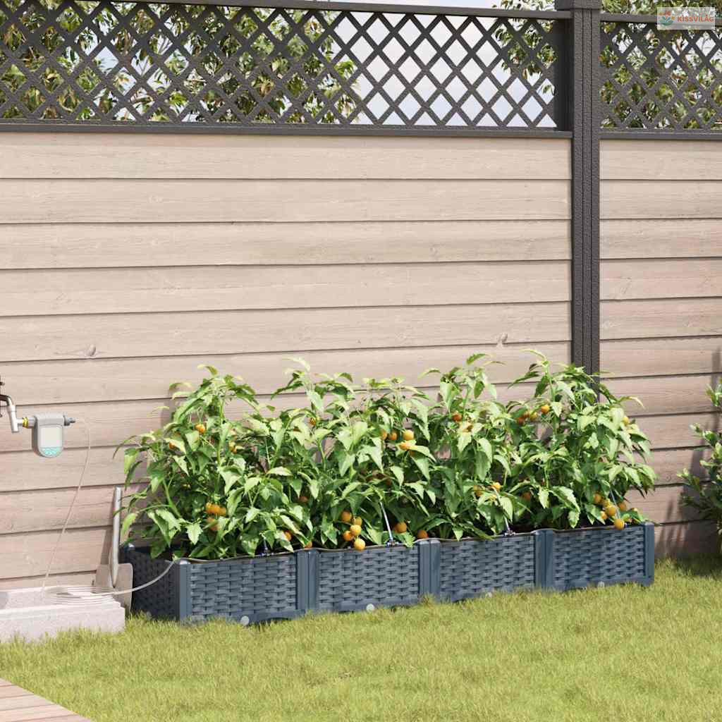 Ez a sokoldalú öntöző virágcserép modern megoldás a kültéri növénykedvelőknek. Aki szereti a praktikus és egyszerű megoldásokat, annak készült, hiszen letisztult formája bármilyen kert vagy terasz kinézetét feldobja. Minimalista dizájnja remekül kiegészíti a kortárs és hagyományos kerteket, elegáns teret ad a kedvenc növényeidnek. Képzeld el ezt a kecses cserepet a kertedben, ahol mindenféle növény és virág elfér, élettel és színnel telítve.