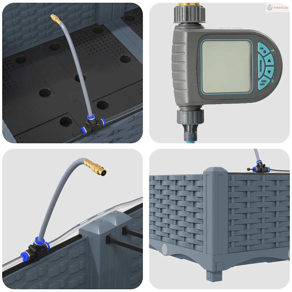 • Öntöző rendszer: Beépített öntöző megoldása fenntartja a növények optimális növekedését az állandó nedvességgel. Ideális olyanoknak, akiknek sűrű a programjuk, mégis szeretnék egészséges növényeket, anélkül, hogy naponta öntözniük kellene.