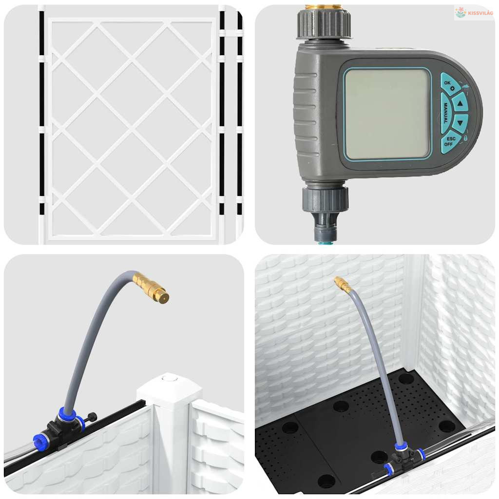 • Öntöző rendszer: Beépített öntöző megoldása fenntartja a növények optimális növekedését az állandó nedvességgel. Ideális olyanoknak, akiknek sűrű a programjuk, mégis szeretnék egészséges növényeket, anélkül, hogy naponta öntözniük kellene.