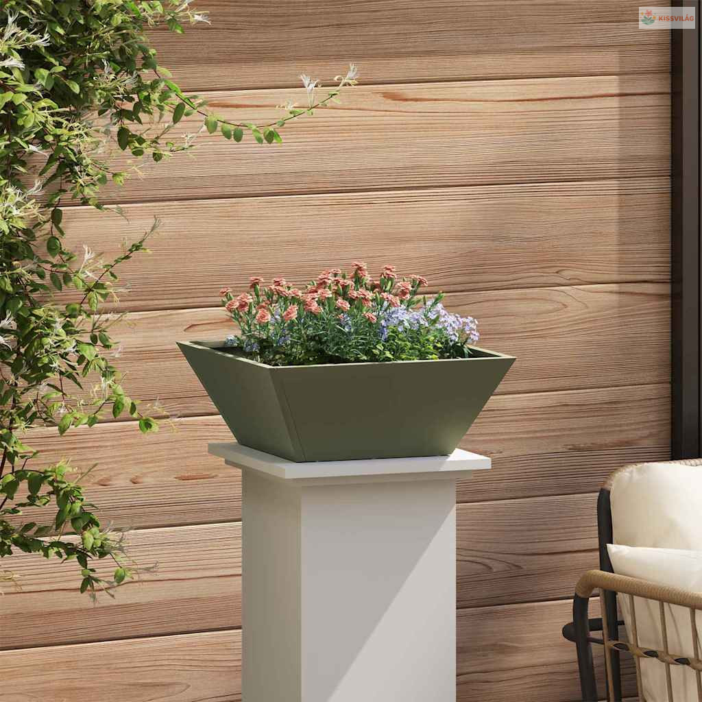 Kerti cserép Olajzöld 40 x 40 x 15 cm Hidegen hengerelt acél