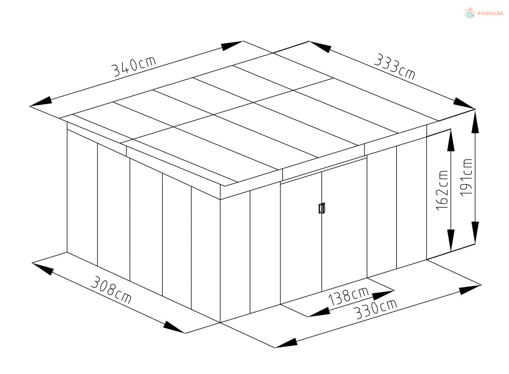 • Méretek tető nélkül: 330 x 308 x 191 cm