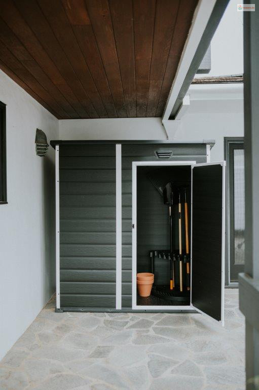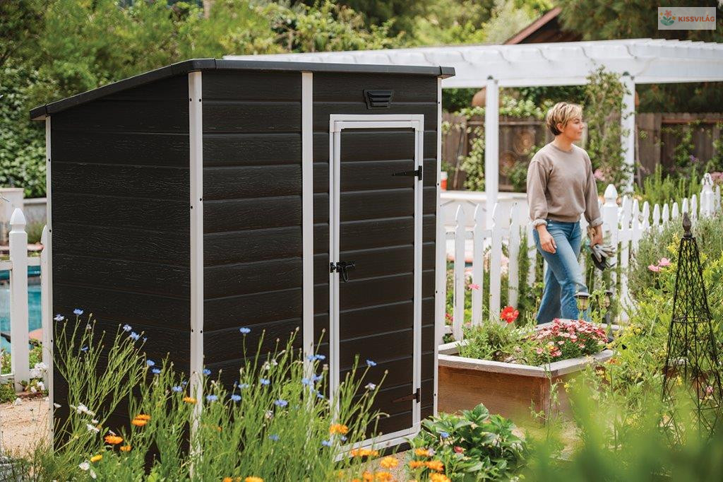 Praktikus és tartós kerti házat keres kisebb helyre? A Keter Essential 6x4 kerti ház sötétszürke színben, fehér részletekkel ideális választás a ház falához vagy a kert sarkaiba. Megbízható tárolóhelyet kínál, és nem igényel különleges karbantartást.