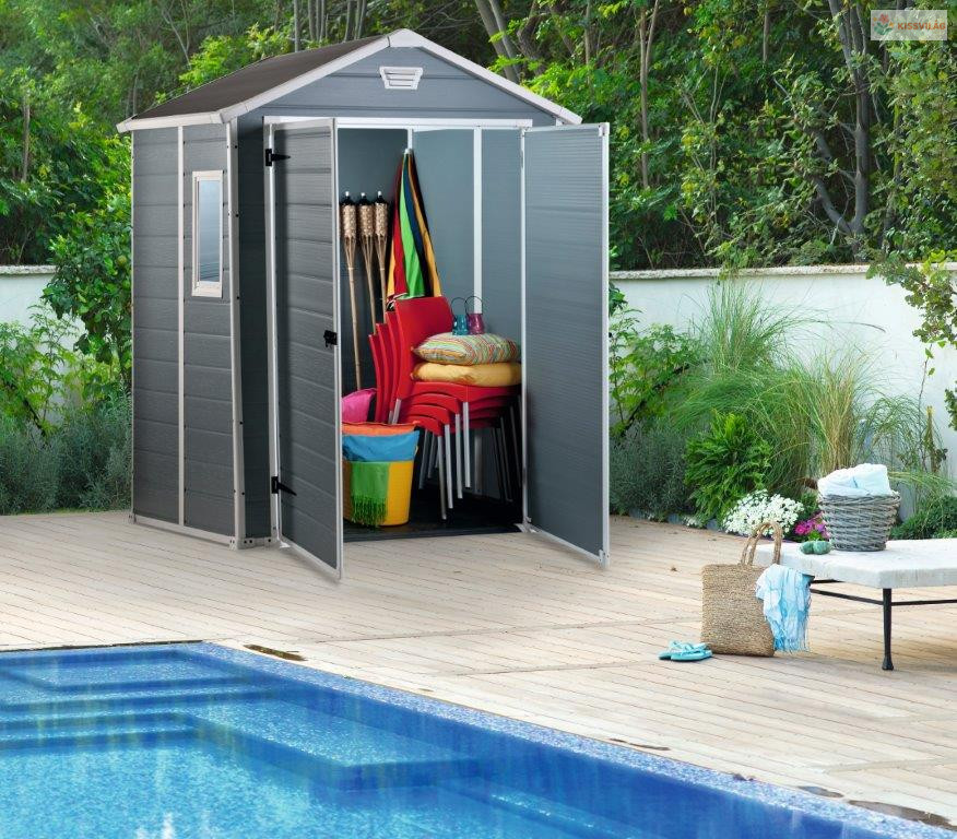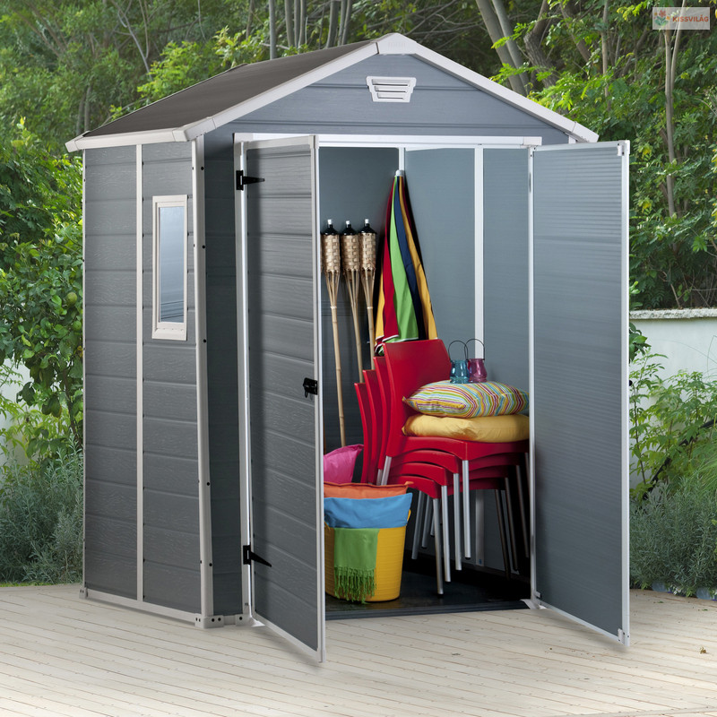 • A kertes ház Manor 6 x 5 alkalmas kerti és műhelyi eszközök, sporteszközök és egyéb felszerelések tárolására