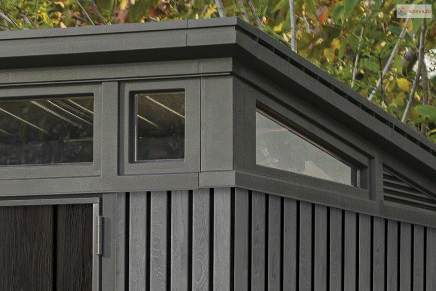 A kertes ház erős tetővel van felszerelve, amely acéllal van megerősítve. Kibírja a200 kg/m² terhelést, így könnyedén elbír egy hókupacot is. Kettős ajtókkal és kis ablakokkal rendelkezik, amelyek beengedik a napfényt. A gyártó gondoskodott a megfelelő szellőzőrendszerről is. Elegendő levegő jut be a házba, ami megakadályozza a nedvesség felhalmozódását. A bejárati ajtó zárral rendelkezik, amely lakattal is felszerelhető a nagyobb biztonság érdekében.