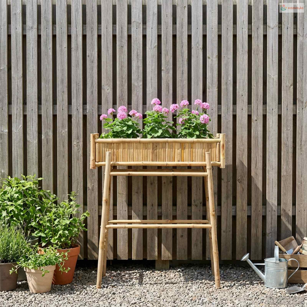 • Természetes Bambusz Felépítés: E virágtartó rusztikus bájat sugároz, miközben a természet ereje és tartóssága is megjelenik. A természetes anyag ellenáll az időjárás viszontagságainak, így biztosítva a növények stabilitását, miközben szuper szép látványt is nyújt.