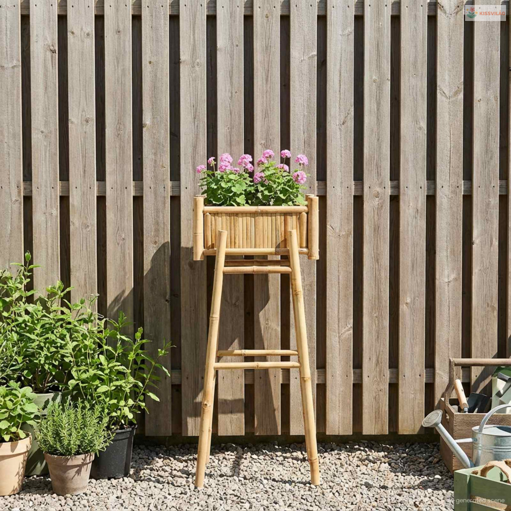 • Természetes Bambusz Felépítés: E virágtartó rusztikus bájat sugároz, miközben a természet ereje és tartóssága is megjelenik. A természetes anyag ellenáll az időjárás viszontagságainak, így biztosítva a növények stabilitását, miközben szuper szép látványt is nyújt.