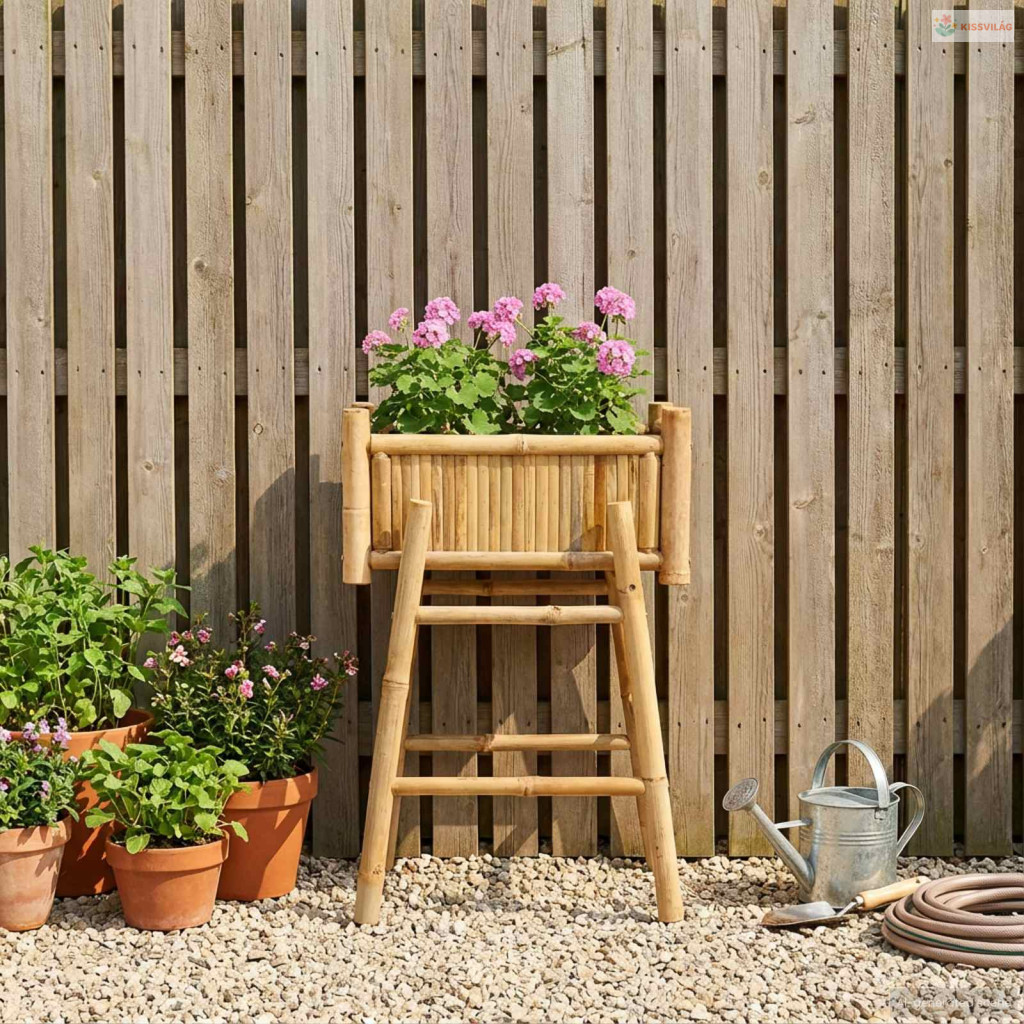 • Természetes Bambusz Felépítés: E virágtartó rusztikus bájat sugároz, miközben a természet ereje és tartóssága is megjelenik. A természetes anyag ellenáll az időjárás viszontagságainak, így biztosítva a növények stabilitását, miközben szuper szép látványt is nyújt.