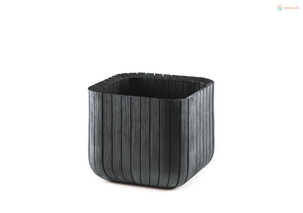 Műanyag virágláda, faerezetes hatás, 50,5 l, UV-álló, méret 39,5 × 39,5 × 39,5 cm, antracit szín.